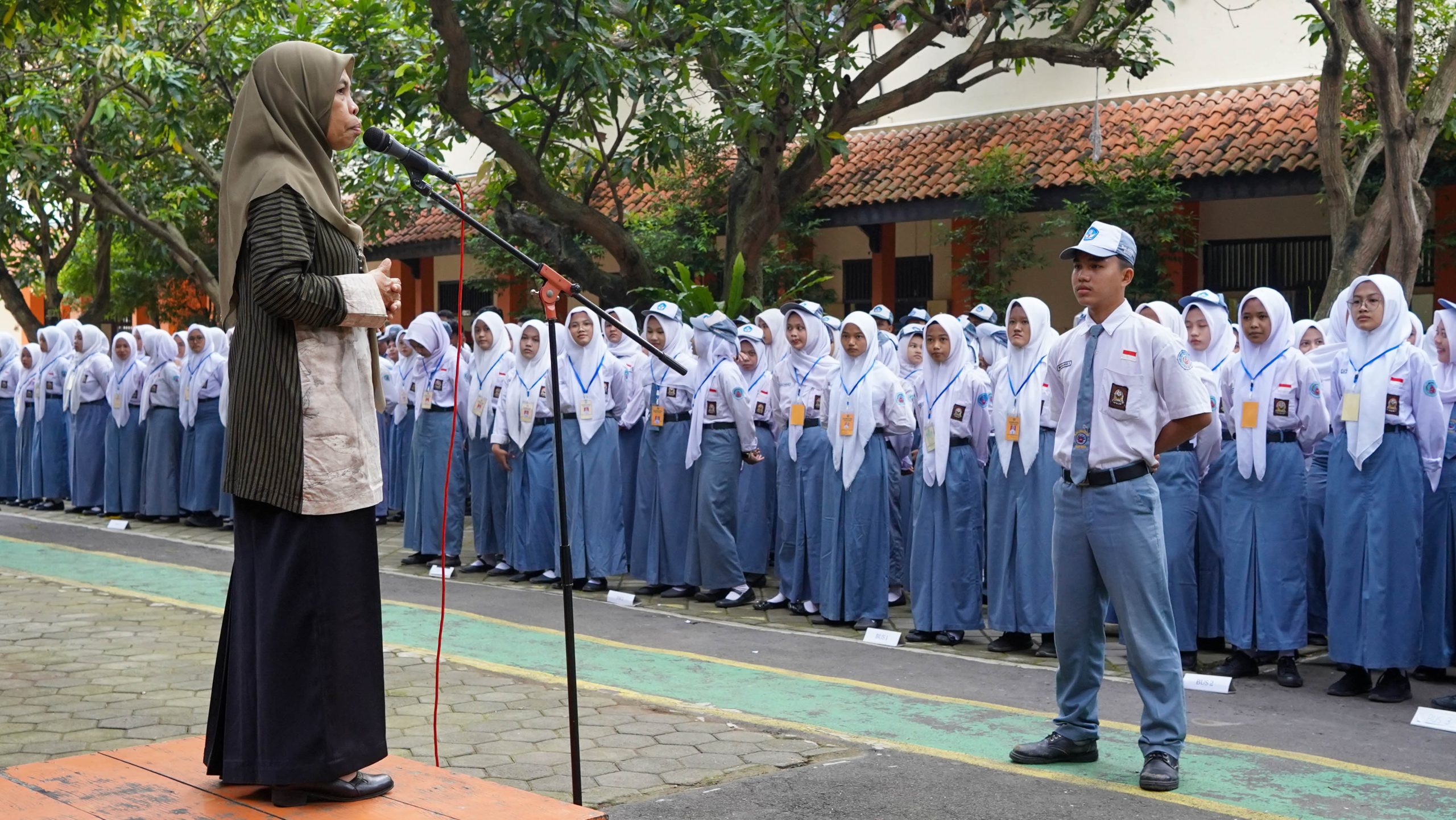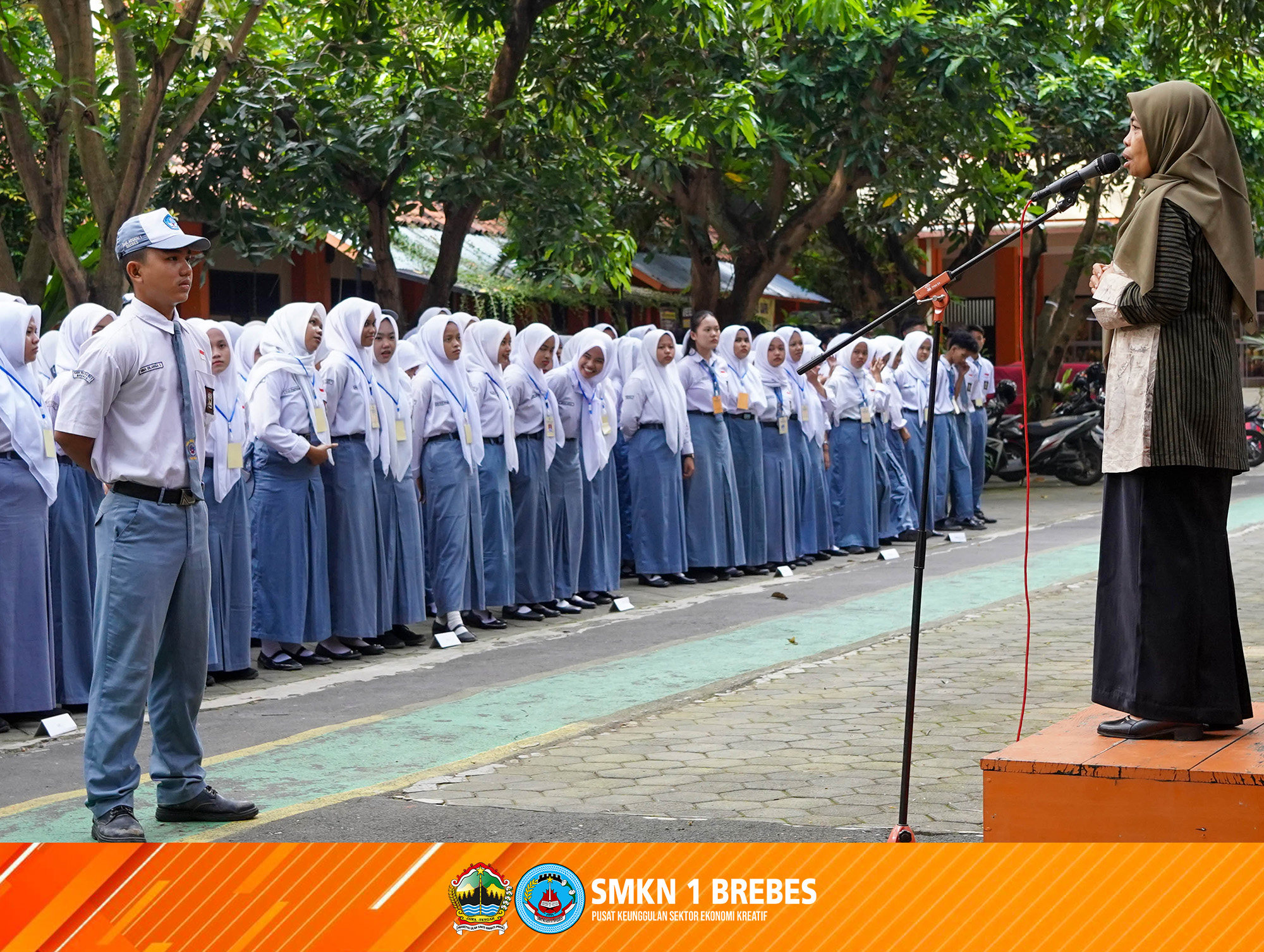 smkn1brebes.sch.id — SMK Negeri 1 Brebes menggelar apel penyambutan bagi siswa kelas XII setelah menyelesaikan kegiatan Praktik Kerja Lapangan (PKL). Kegiatan tersebut dilaksanakan pada Selasa pagi di lapangan tengah sekolah.